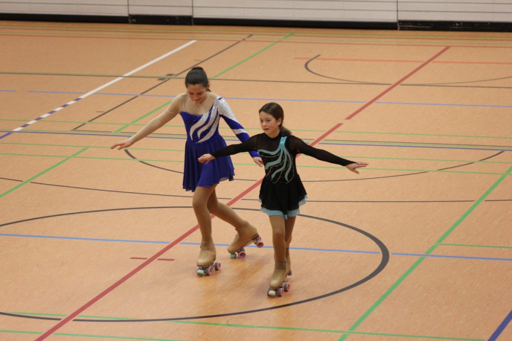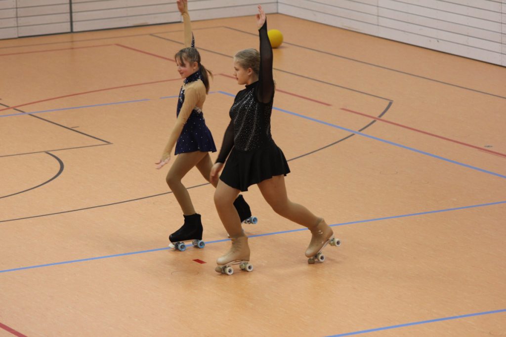 Die Rollkunstläuferinnen zeigten in einer Vorführung ihr Können vor knapp 30 Eltern.